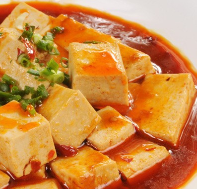 4. 然后倒入豆腐碎,快速翻炒约30秒;