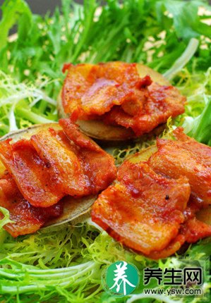 8、至两面焦黄色即可关火,然后用生菜卷着烤五花肉、泡菜和大蒜一起来吃