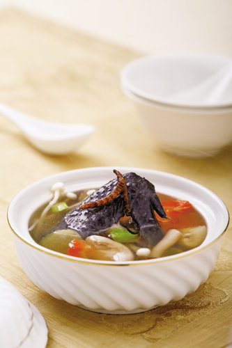 材料:乌鸡若干,红枣、黄芩、当归、薏仁适量,盐少许。