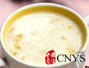 制作方法:将藕粉、水、奶一起放入锅内,均匀混合后用微火煮,搅至透明糊状为止。