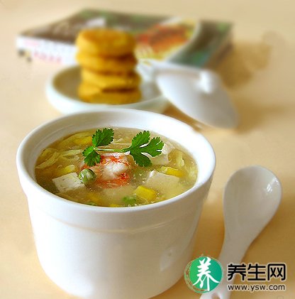 原料:豆腐50克,青菜叶10克,熟鸡蛋黄1个,淀粉10克,精盐、葱姜水各少许。