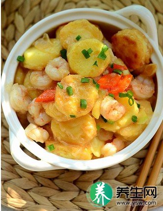 材料:日本豆腐、虾仁、红椒、葱、姜、盐、料酒、淀粉、胡椒粉、高汤、植物油