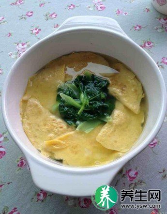4、锅内加入水,烧开后下入蛋饺煮两分钟。放入小青菜。