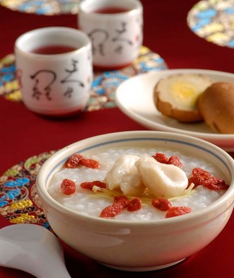 c、将川烫过的猪肝及嫩姜丝、胡椒粉投入粥中搅拌均匀即可。