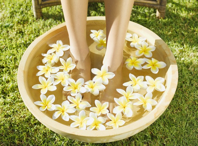选择适当的药物,水煎后兑入温水,然后进行中药足浴,让药物在水的温热作用下通过皮肤渗透进入到人体,再经血液循环而输送到人体的全身,达到防病、治病的目的。