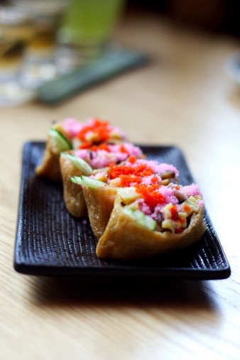原料与制法:嫩豆腐500g,鲤鱼鱼子50~150g,鸡蛋1个,合欢花10g,面粉、水淀粉、生姜丝、葱、细盐、酱油、花椒、味精、猪油各适量。将嫩豆腐放入沸水中烫1min,捞起,沥水,切成红烧肉形的大块;将合欢花置瓦罐中水煎,取头汁与二次汁对和,备用;将蛋清打入碗中,加入布料、细盐、水淀粉,拌和成面糊。起热锅,旺火,加入猪油约500g,油热后,将豆腐逐块蘸蛋清糊下锅,炸成红黄色捞出,同装入瓷碗中。加起热锅,将合欢花药汁倒入锅中,放入鲤鱼鱼子、生姜丝、细盐、料酒、花椒、葱、酱油,鱼子煮熟时中入水淀粉、味精,勾芡。上笼蒸熟豆腐,取出,扣于大盘中,将芡汁浇在豆腐上即可。
