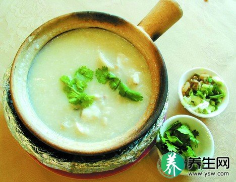 原料:优质粳米、草鱼净肉各100g,猪肉200g,腐竹40g。