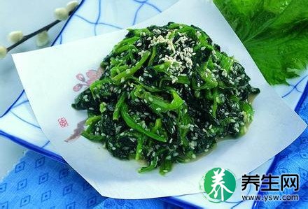 5. 汆烫好的菠菜捞出冲凉开水,挤干水分加入调味汁、熟白芝麻拌匀即可。