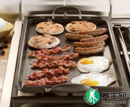 用于煎炸的食材,也可以用烤箱烤或不粘锅烤熟食用。如超市出售的那种速冻调味肉块、肉排、鸡米花等,通常都建议回家后再油炸一次,其实用烤制的方法同样美味。把它放在烤箱里两面烤一下,香脆可口,而且脂肪含量能从油炸后的22%下降到8%以下。