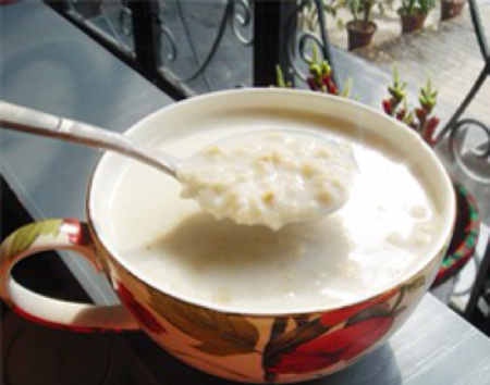 (2)加入即食燕麦片50克,拌均匀即可。可根据个人不同喜好,加入蜂蜜或糖浆。