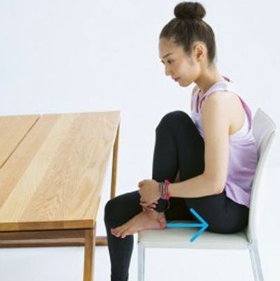 1. 抬起一只腿,放到椅子上,并且尽量靠近大腿。