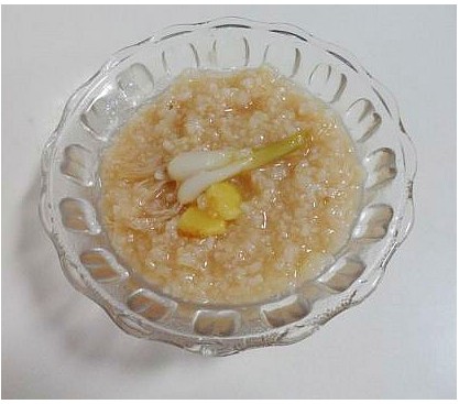 食材:糯米50g、葱根2段、姜5片、醋5ml、葱白2段