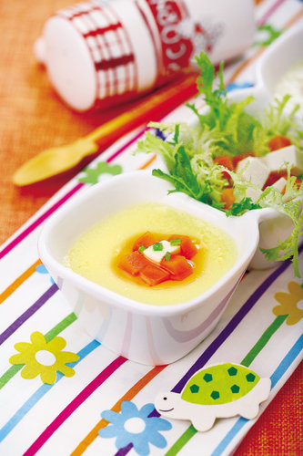 蛋黄含有很丰富的维生素D,因此鲜美滑嫩的蛋黄豆腐就是补钙的优秀菜肴。动物内脏,如肝脏,血液中的维生素D含量也很高,所以将白豆腐和血豆腐一起做成“红白豆腐”也非常理想。另外,鸡胗、猪肝等动物内脏也对增加豆腐的钙吸收有很好的作用。