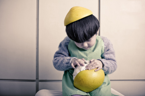 吃柚子皮能发汗:秋季吃柚子是大家所爱,但您知道吗,柚子皮也是宝。因柚皮含挥发精油,与红茶同煮能祛寒发汗;把柚肉挖空,填入茶叶,悬挂通风处,渐渐风干,柚的体积缩小,名为“茶柚”,专治伤风感冒发热;茶柚内的茶叶,经风干吸取精油后,辛散效力更强。我记得小时候农村没有钱看病,就经常制作这种“茶柚”,弄一两个挂在梁上风干,等到家里有人伤风感冒的时候就取下来,泡着喝一喝就好了。所以中医说,中秋吃柚子可谓养生一大宝。