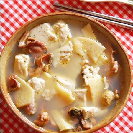 材料:河蚌、豆腐、咸肉、冬笋、食盐、姜、料酒、胡椒粉