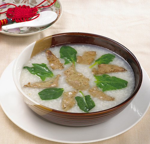 做法:将猪肝切碎备用,先将粳米洗净,入锅加水,大火煮沸后再煮约15分钟,将猪肝放入继续煮,待将熟时放入食盐、葱、姜、香菜等调味品即可。