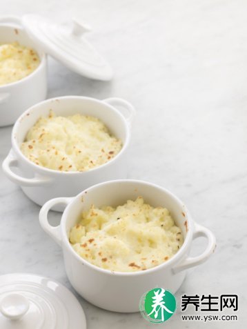 【做法】将土豆洗净蒸熟。凉温后去皮,压成泥。土豆泥中加淡奶油、盐、黑胡椒粉,搅拌均匀。胡切萝卜切丁、玉米豌豆洗净沥干水份。锅内放适量橄榄油,下入三丁翻炒片刻,加适量蚝油。再加适量水煮。烧开后,加水淀粉勾芡即可。将配料汁淋在做好形状的土豆泥上。