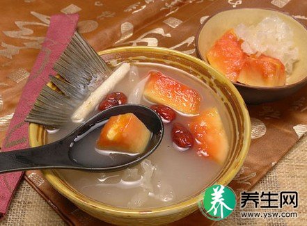 做法:将银耳用清水浸透发开,洗净;木瓜削皮去籽,切成虚;南北杏仁去衣,洗净,连同银耳、冰糖一起放入炖煲内,加适量开水炖煮20分钟后即可食用。