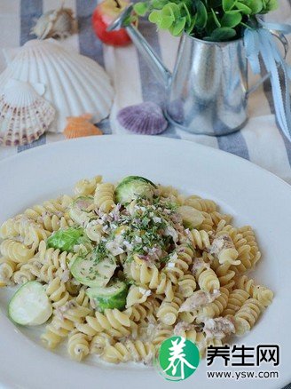材料:意大利面100克、金枪鱼50克、西红柿200克、黑橄榄10颗、食盐小半勺、番茄酱1大勺、橄榄油1小勺、白葡萄酒1大勺、黑胡椒少许、牛奶120毫升、百里香少许、奶酪2片