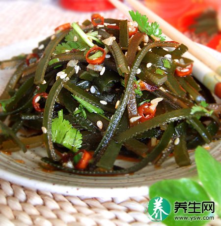 2、海带丝放锅中加凉水煮,水开后继续煮3分钟左右,把锅中的热水滗掉,马上过凉水(这样可以保持它脆脆的口感)。为了吃得卫生,还要再过一遍凉开水。