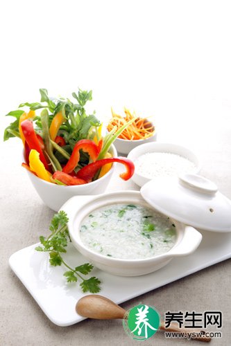 香菜粥 香菜30克,大米100克,调味品适量。将香菜洗净,切细;先取大米煮粥,煮至粥熟时下香菜及调味品等,再煮一二沸即成。每日1剂,连续3~5天。可解表散寒。适用于风寒感冒、麻疹疹出不畅等。