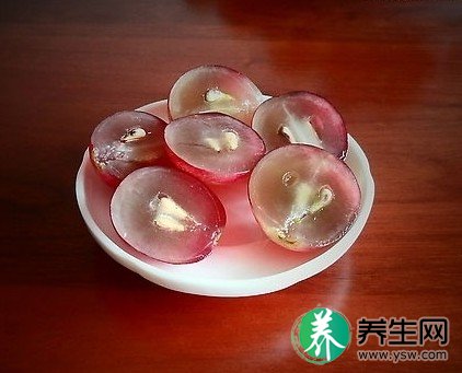 葡萄籽能延缓衰老。葡萄籽中的白藜芦醇具有极强的抗氧化、防癌、防心血管病、抗辐射、抗炎、抑菌等作用。其中还含有大量单宁和类黄酮物质,具有抗氧化作用,能延缓衰老。葡萄籽直接吃容易造成口舌发麻,比较可行的吃法是把葡萄籽用锤子或刀背砸碎,扔进白酒里泡酒喝。