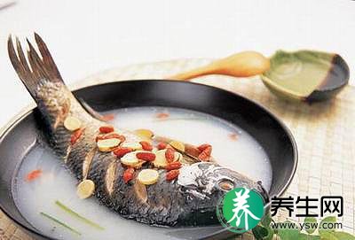 配方:赤小豆50克,鲤鱼1尾(500克),料酒10克,姜5克,葱10克,盐3克,鸡精3克,胡椒粉3克,鸡油25克。