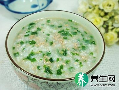 材料:粳米100克,韭菜30~60克,精盐少许。
