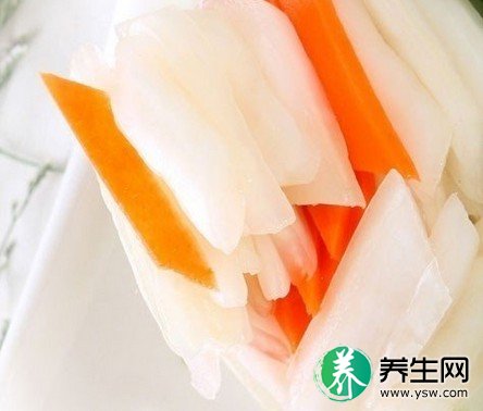 白萝卜中的维生素c含量极高,但红萝卜中却含有一种叫抗坏血酸的分解酵素,它会破坏白萝卜中的维生素c。一旦红白萝卜配合,白萝卜中的维生素c就会丧失殆尽。