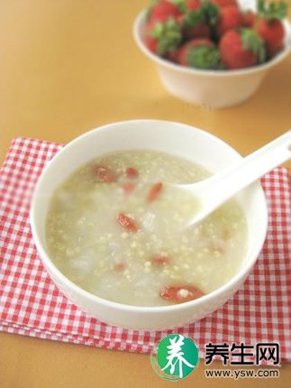 山药枸杞粥:将山药、枸杞、冰糖、小葱一起熬煮,冬季多喝,可收到补脾养胃、生津益肺、补虚益精及清热明目的功效。