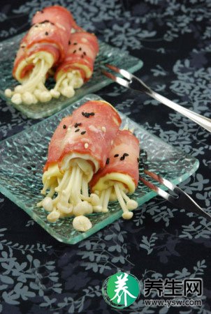 金针菇是一种常见的食用菌类,因它的口感爽滑,可吸收不同的味道。所以在打火锅时,人们都喜欢用它作为配菜。而用金针菇烹制的菜式也有不少,尤其在日本餐里它的应用更为广泛。除了油炸的做法之外,大多均是清淡的菜品。如腐皮金针菇卷、金针菇肥牛煲、金针菇炒肉丝等都是大众喜欢的菜式。