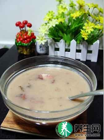 将赤小豆洗干净后浸泡;葱切成葱片;莲藕洗净切片;鲫鱼去鳞、内脏、鳃,洗净沥干水。赤小豆捣烂,鲫鱼用酒少许搽匀,蒸熟放冷后拆骨取肉。把清水适量煮沸,放鲫鱼肉,煮开后放赤小豆泥,并不断搅拌,放葱花、煮成稀糊状,调味即可。