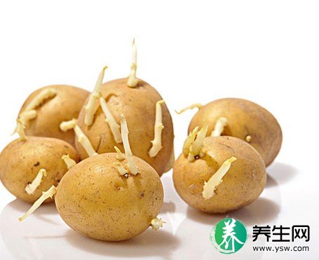 发芽的土豆会产生大量的龙葵素,人食用后会中毒。使用发芽土豆时,应先将芽和芽根及土豆表皮变绿的部分挖去,放于清水中浸泡2小时以上。