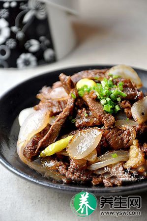 4.锅中加油,加至8成热后,关火,将牛肉和洋葱一起过油,洋葱先过一遍油可以去除洋葱辛辣味。
