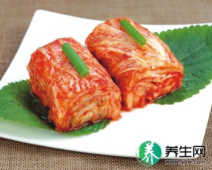 11、在每片大白菜上面层层均匀抹上辣白菜酱。