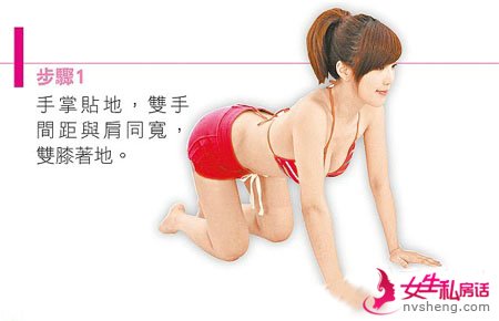 步骤2、身体向下压,手肘弯曲,感觉胸肌用力,再回到步骤1,约做10次。