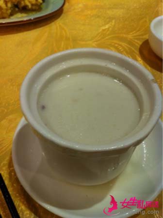 3、将鸡汤注入锅内再把猪肺片和杏仁同杏仁汁一并倒入,加入上述调料,烧开掉浮沫即成。