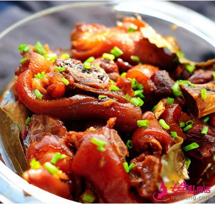 材料:猪蹄、香叶、干山楂片、八角、蒜辫、桂皮、冰糖、老抽、生抽、料酒