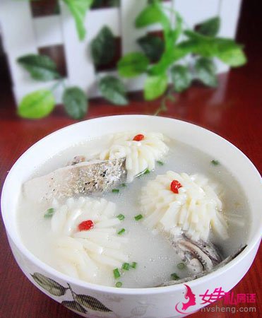 材料:鲈鱼、黑豆、当归、黄芪、党参、枸杞、葱白
