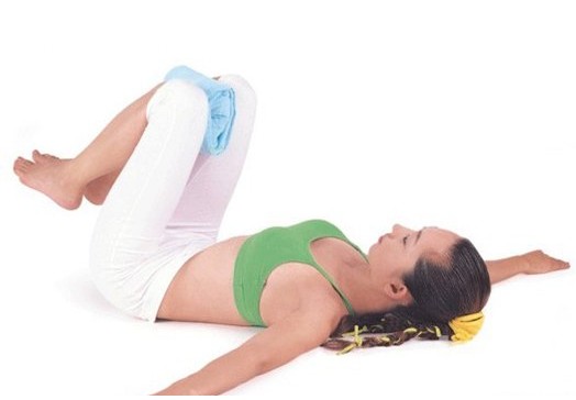 1、平躺在地上,脸朝上,手臂伸直向两侧打开放在地板上,将打好的毛巾球夹在膝盖之间,尽可能将膝盖弯曲并靠近胸部。夹着毛巾的腿不能放松,并且保持用胸腔均匀深呼吸。保持十秒钟;