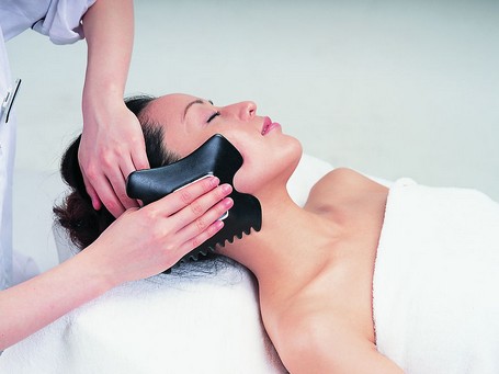 “刮脸”与按摩作用差不多,只是、按摩用指腹按摩,力道不像刮板能完整、大面积地施加在肌肤表面,将废物往同一方向导出;若说到排毒去水肿,刮板的效果比较强。