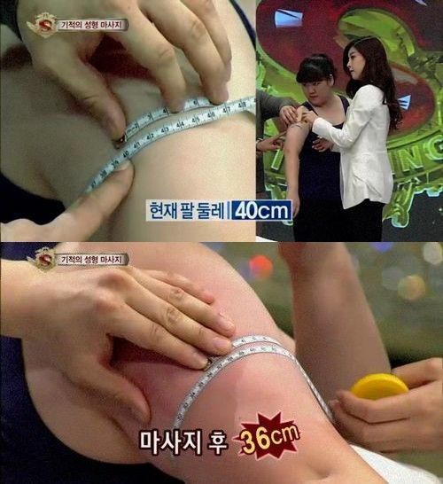 奇迹10分钟按摩过后,测量该名观众的胳膊尺寸惊奇的发现从40CM减小到了36CM。所有在场的人都对此按摩效果感到惊讶和佩服。