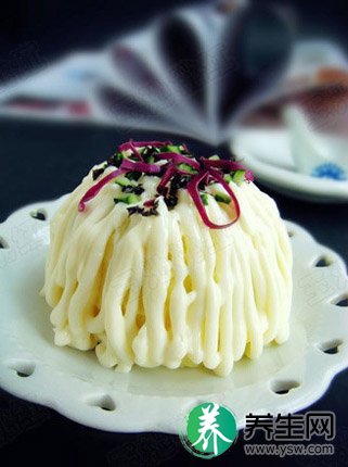 2、鸡蛋可以与土豆片一起蒸熟,凉后去皮,蛋白切成小粒,蛋黄捻成泥,黄瓜切成小粒