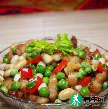 ⑤放入瘦猪肉丁,加入酱油与盐,快炒至熟透起锅。
