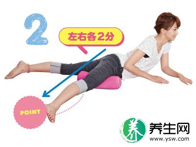 从腰部开始有效的施力,将柱形枕滚到股关节的位置,可以刺激骨盆周围的肌肉。