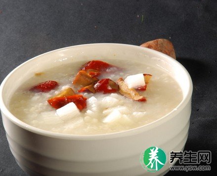 薯蓣粥 生薯蓣、麦面粉各100~150克或用干山药磨粉,葱、姜适量,红糖少许。将薯蓣去皮,洗净,切为薄片,而后捣为泥糊状,放锅中煮沸后,下小麦面调匀,而后再放入葱、姜及红糖等,煮成粥糊服食,每日1剂。可养心气,健脾胃。适用于心气不足、心悸怔忡、自汗盗汗、脾胃虚弱、虚劳消渴、食欲不振、消化不良、腹泻入痢及男子遗精、早泄、女子带下等。
