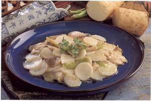 山药有补脾止泻,补肾功效,配青鱼肉增强了健脾益气之力。本菜味美鲜嫩,对肾病有较好的保健作用。