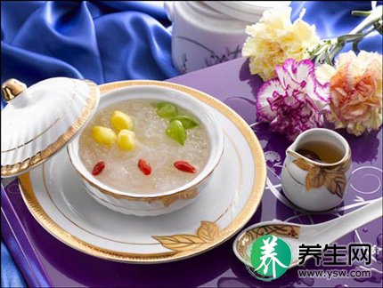 做法:萝卜洗净切丝,放入热水焯熟备用。先将白果洗净与糯米同煮,待米开花时倒入白糖文火再煮10分钟,拌入萝卜丝即可出锅食之。