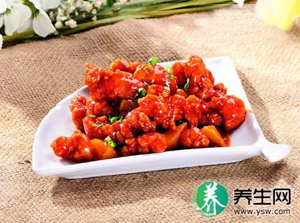2.烧热锅放入植物油,待油烧至六七成热时,把猪腿肉一块块下油锅炸至内熟外脆呈黄色捞出,将锅中的油倒去,加入料酒、水100克,白糖、白醋、精盐,下水淀粉勾芡,倒入炸好的肉和鲜荔枝肉翻匀,淋上少许熟油,起锅装盘即可。
