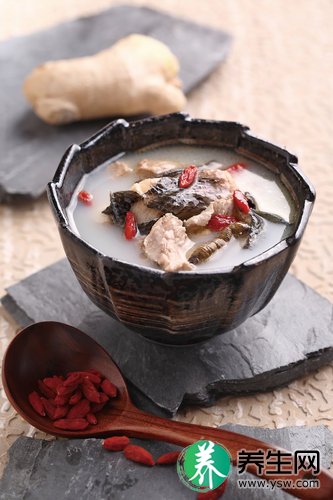 鲤鱼处理干净,姜去皮切成片。烧热锅子后,加油烧热,放进鲤鱼,两面稍煎,然后加入600毫升的清水、米酒、盐、枸杞和姜片也一同放进去,用慢火煮一个小时即可。